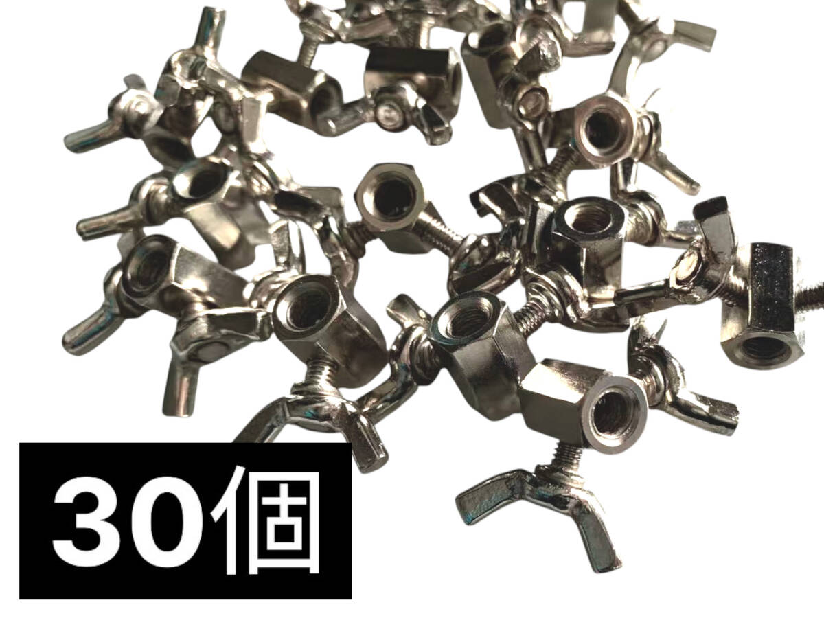 > SALE 30個 4mm メッキワイヤ止め ワイヤーストッパー メッキ 6角ワイヤーストッパーW ダブルネジ 蝶ネジ わな 締め付け 固定 くくりわな