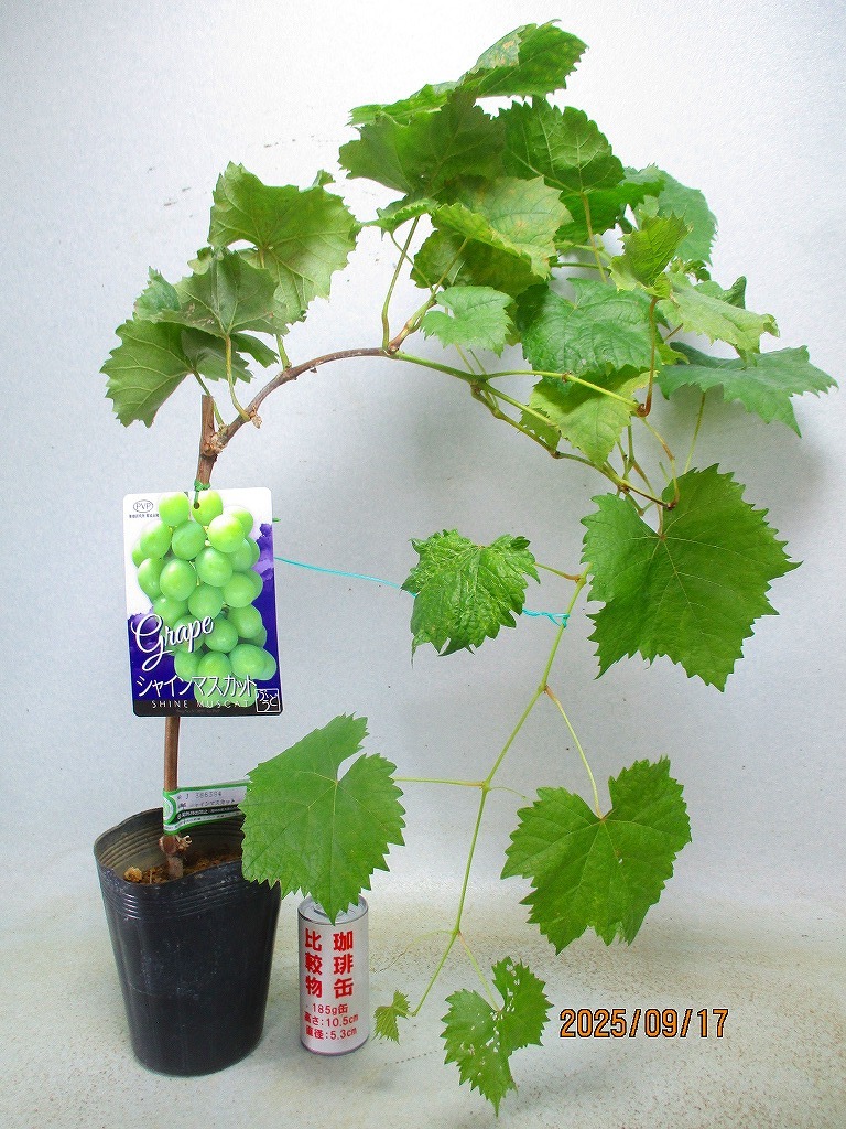> [野風苗木流通]ブドウの苗木 シャインマスカット(91362黒ポット)全高:67㎝※同梱包は「まとめて取引」手続厳守※120サイズ*送料明記