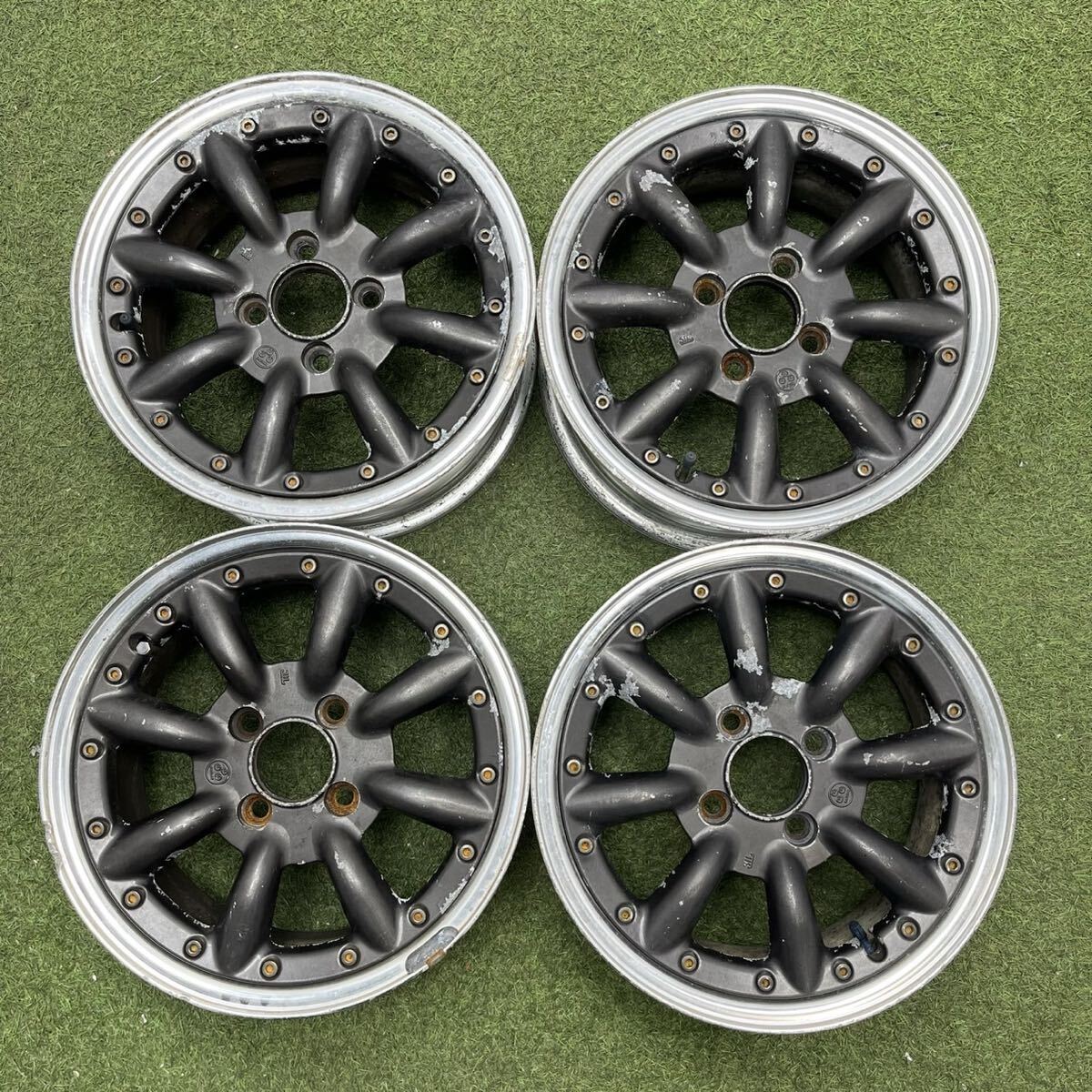 - 【1224】★旧車★14インチ 6-JJ SPEED STAR ワタナベ R-S8 6-JJ×14 ET+40 PCD100 4穴 ハブ径65 中古アルミホイール4本