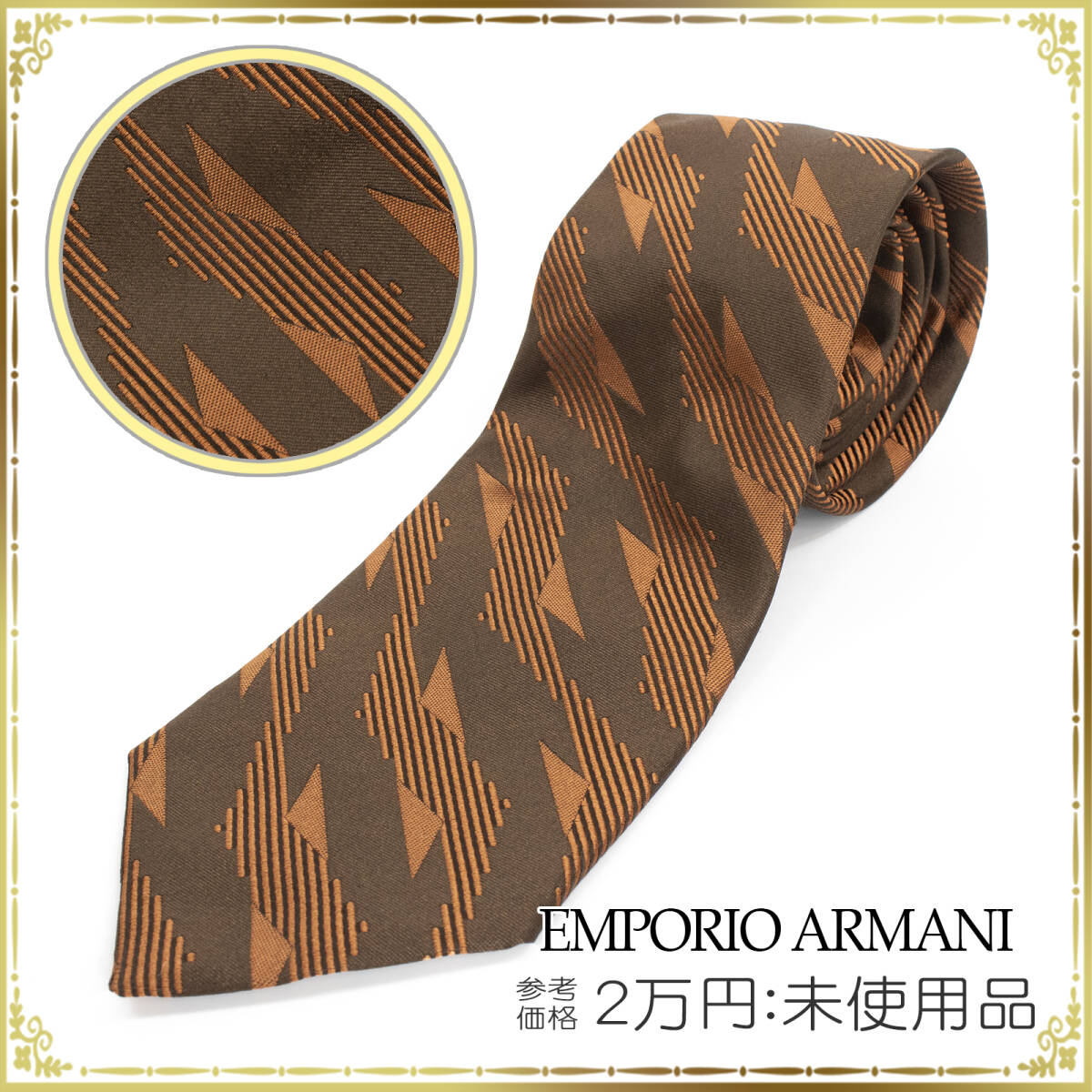 > 【全額返金保証・送料無料・未使用品】エンポリオ アルマーニのネクタイ・正規品 シルク100% ラインストライプ 総柄 オレンジ色系 ビジネス