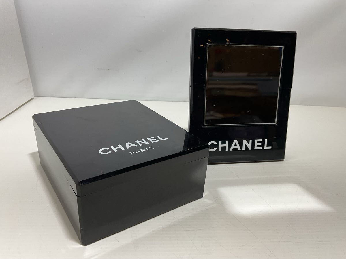 - シャネル CHANEL 卓上 両面 ミラー 鏡 ブラック/黒 拡大鏡 /小物入れ ボックス ケース 化粧品入れ アクセサリーケース ノベルティ