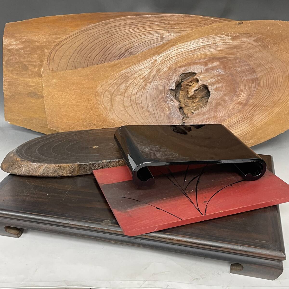 - KF13/79 花台 まとめて 6点 漆器 天然木 飾り台 御花台 香炉台 盆栽台 園芸 生け花 華道具 インテリア雑貨◎