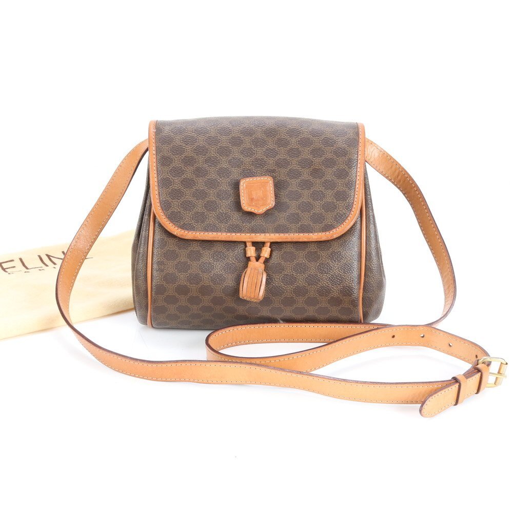 > 1円■ヴィンテージ■セリーヌ■マカダム レザー ショルダーバッグ クロスボディ ブラウン 茶色 ハンド トート レディース EEE CS18-7