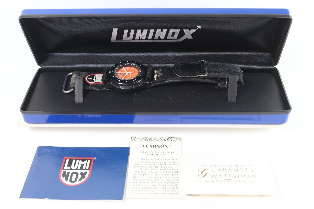 > ★LUMINOX ルミノックス SERIES3900 ネイビーシールズ ミリタリー オレンジ文字盤 クオーツ デイト メンズ 腕時計 ケース付き 8918-TE