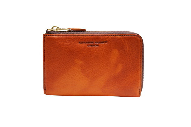 - 490-59202【61.オレンジ】フルイド 本革 L字型ファスナー 二つ折り財布 [キャサリンハムネット] [KATHARINE HAMNETT LONDON]