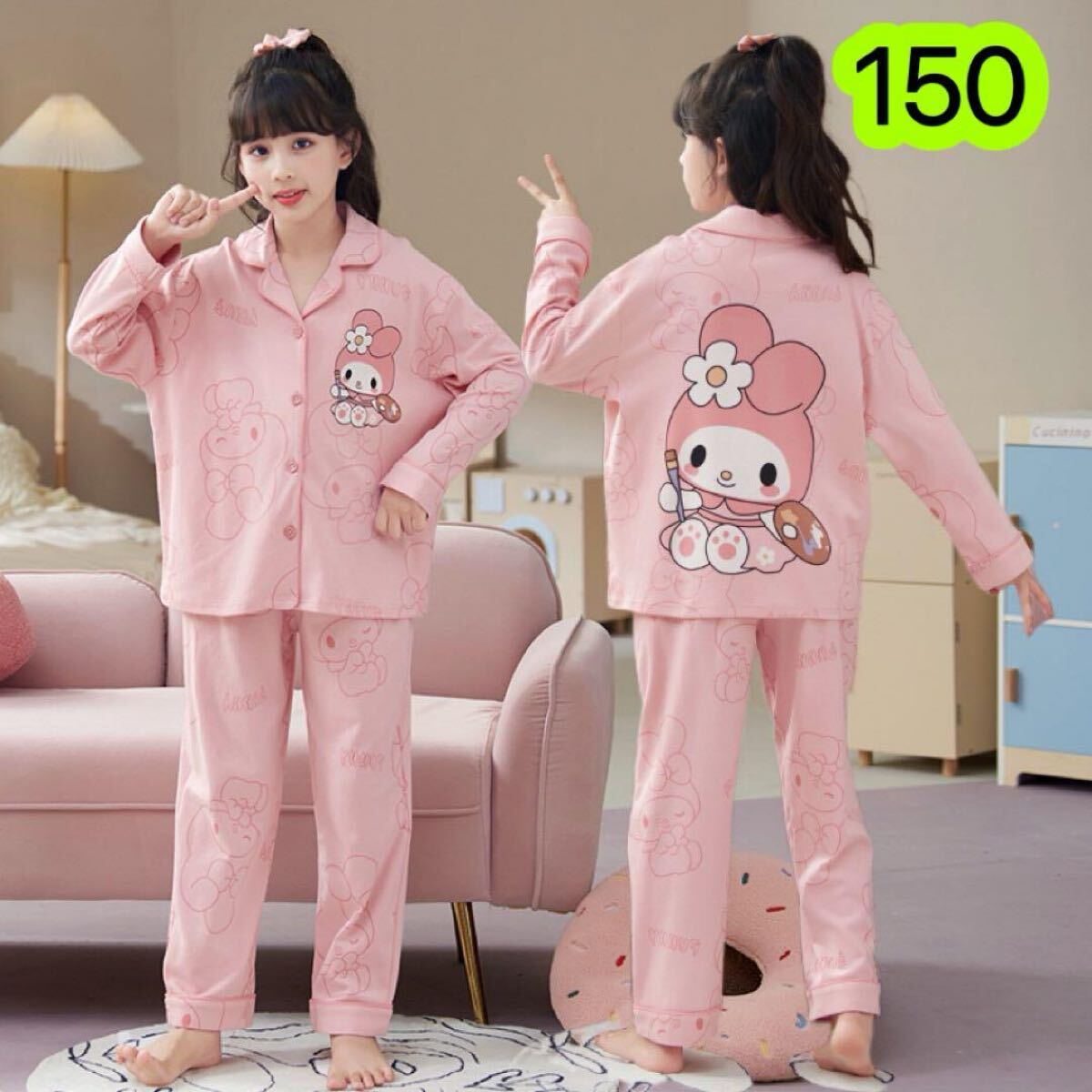 - 女の子パジャマ サンリオ風 ピンク長袖上下セット 可愛いルームウェア 第314号