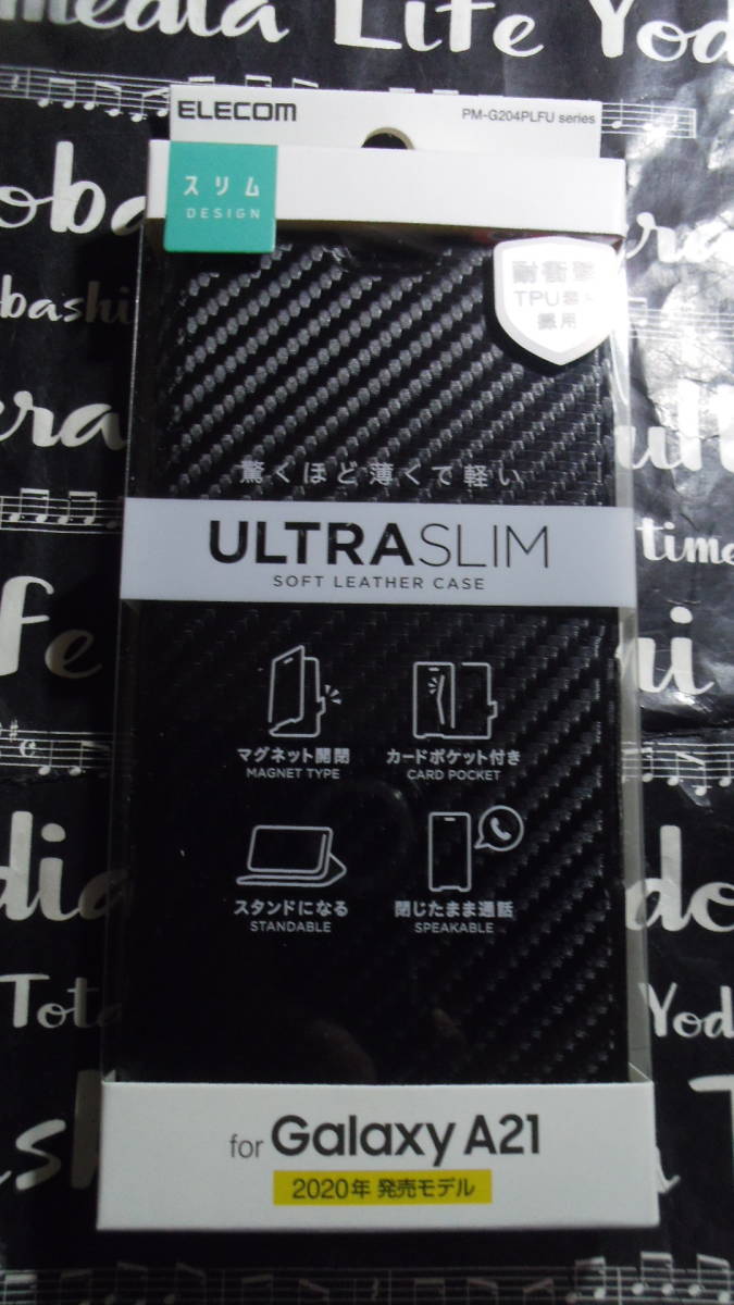 - ELECOM Galaxy A21(シンプル) SC-42A SCV49 ソフトレザーケース/薄型/磁石付 カーボン調ブラック スタンド機能付 カードポケット付