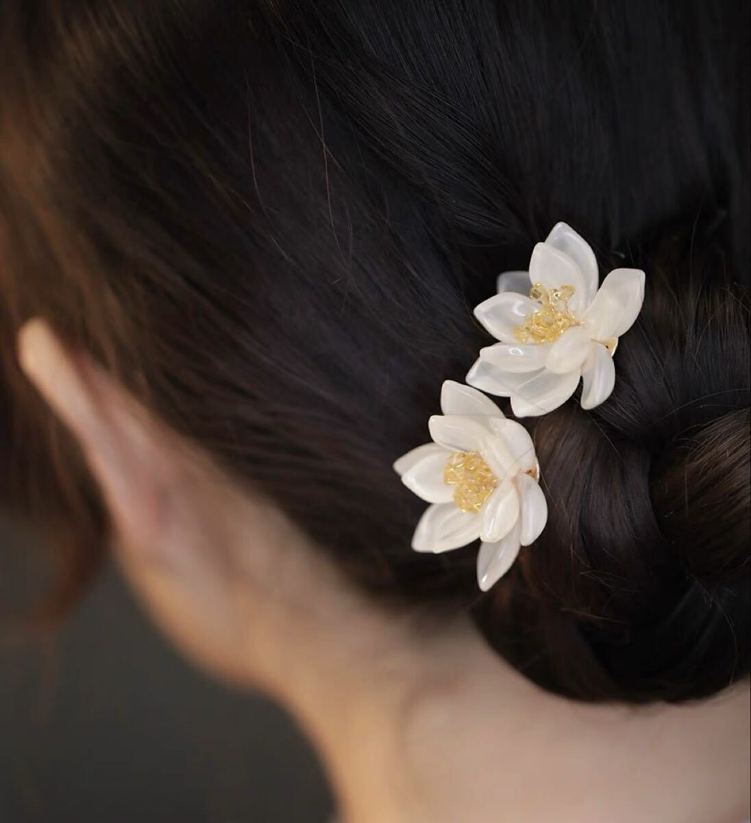 - 簪(かんざし)・笄(こうがい)・髪飾り《花海棠》白 2点セット
