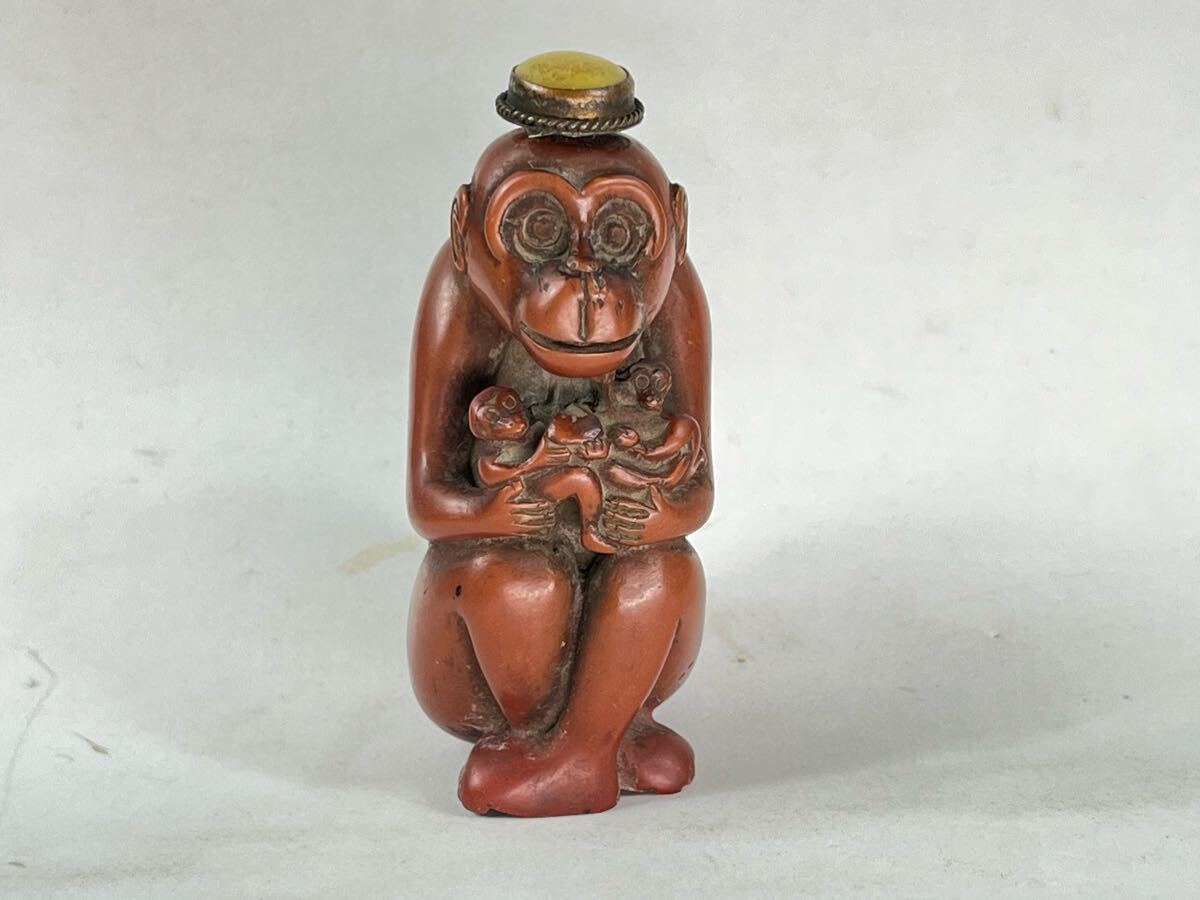 - 中国美術 鼻煙壺 猿 サル 骨董 古玩【博圓】高7.7cm