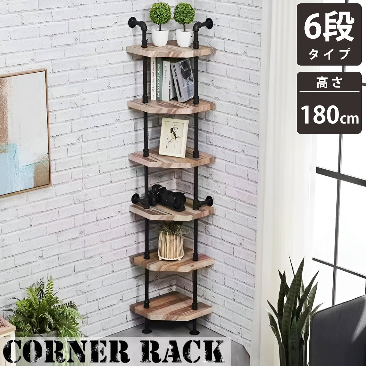 - コーナーラック スリム 6段 おしゃれ インダストリアル 水道管 水管 収納ラック 収納棚 リビング 北欧 モダン シェルフ 飾り棚 WP-78