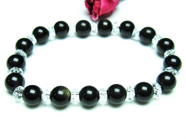 > 誠安◆超レア最高級超美品天然ゴールドキャッツアイオブシディアンブレスレット 8mm [L207-235]