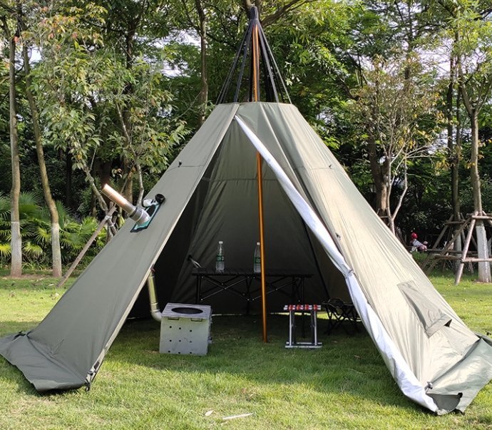 > ワンポールテント1個 薪ストーブ・メラテレビ使用可能! 3~4人用 煙突穴付き 三角テント 北欧スタイル キャンプ アウトドア レジャー