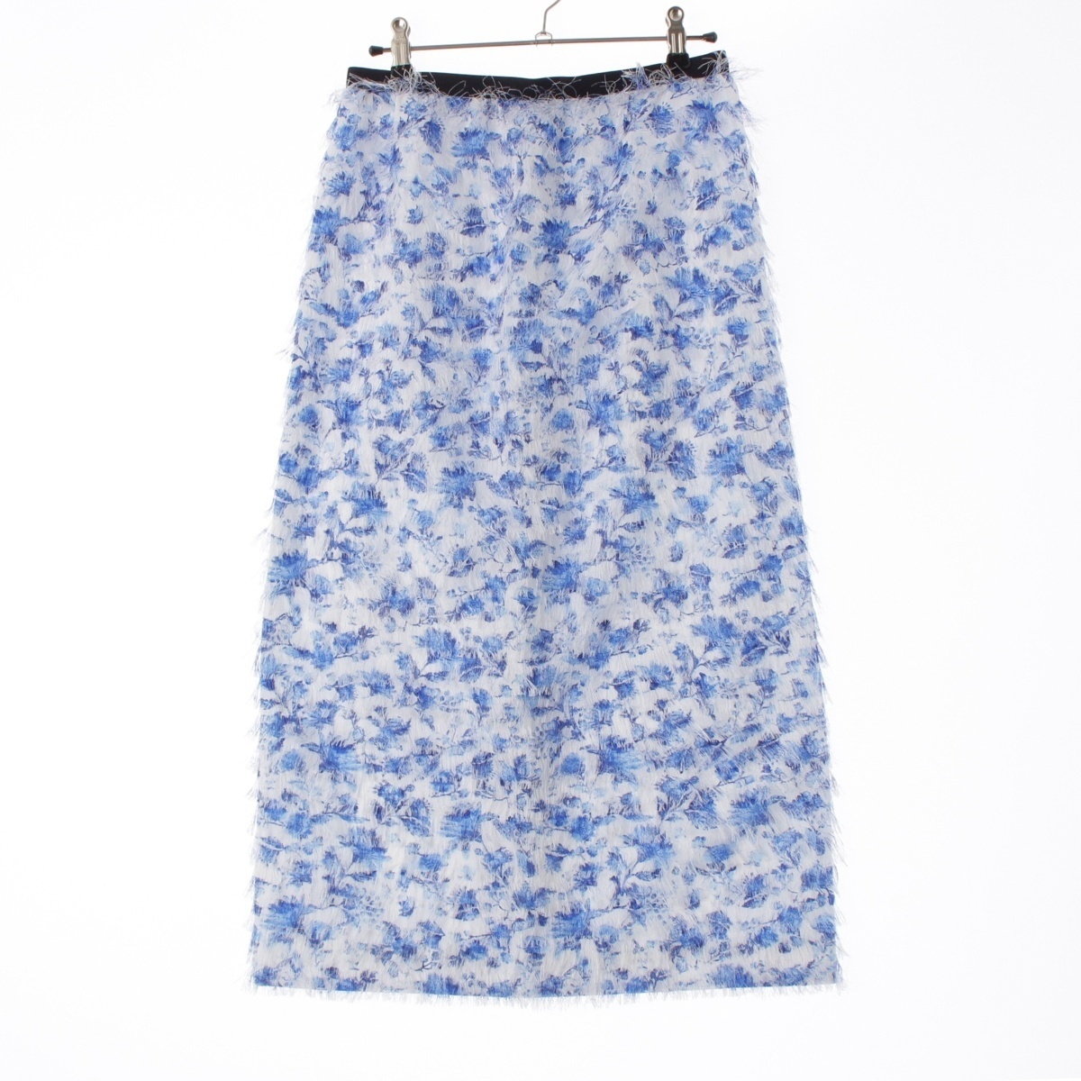- ドゥロワー 24SS フラワープリント 花柄 ミモレ丈 フリンジ スカート 6524-299-1790 ホワイト ブルー 36【中古】