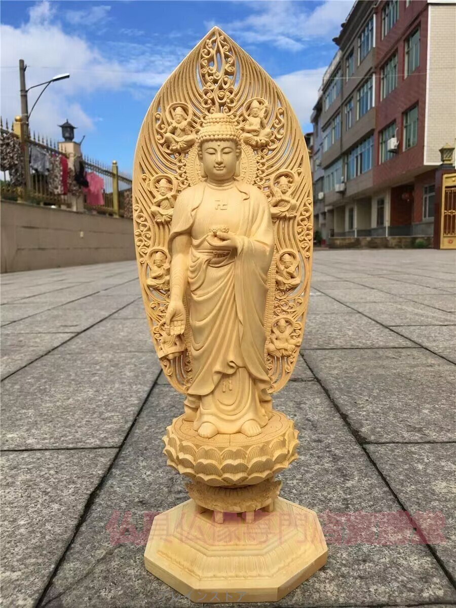 - 【寶勝堂】大型高43cm 阿弥陀如来像 黄楊木 木彫 置物