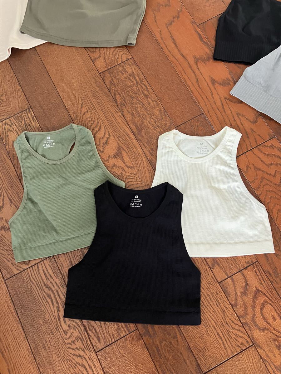 - リブタンクトップ 3枚セット ブラック ホワイト グリーン