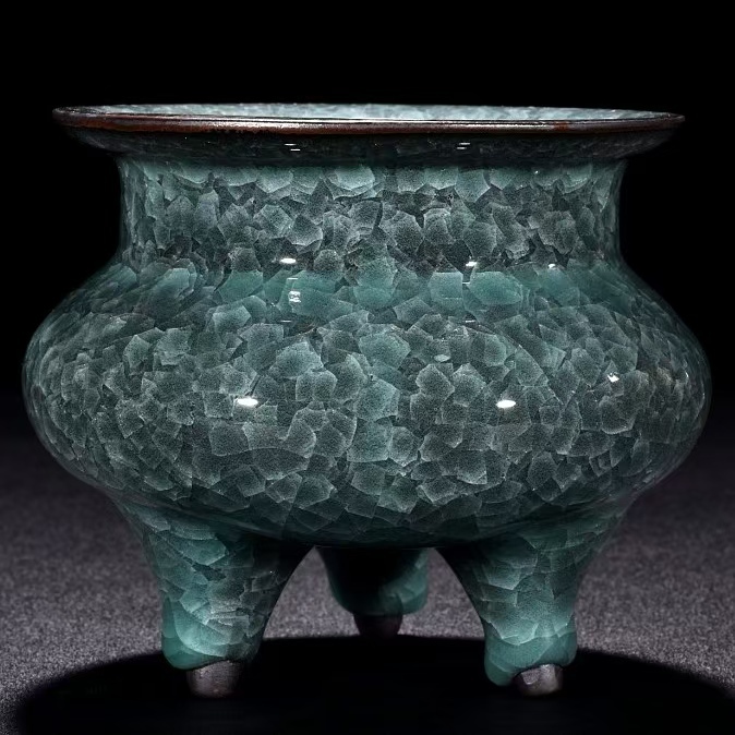 - 宋時代 磁器 秘蔵 官窯 汝窯 天青磁氷割れ三脚炉・鼎 古陶磁器 陶芸 唐物 古賞物 時代物 骨董品古置物 極細工 中国磁器 古美味 中国古玩923