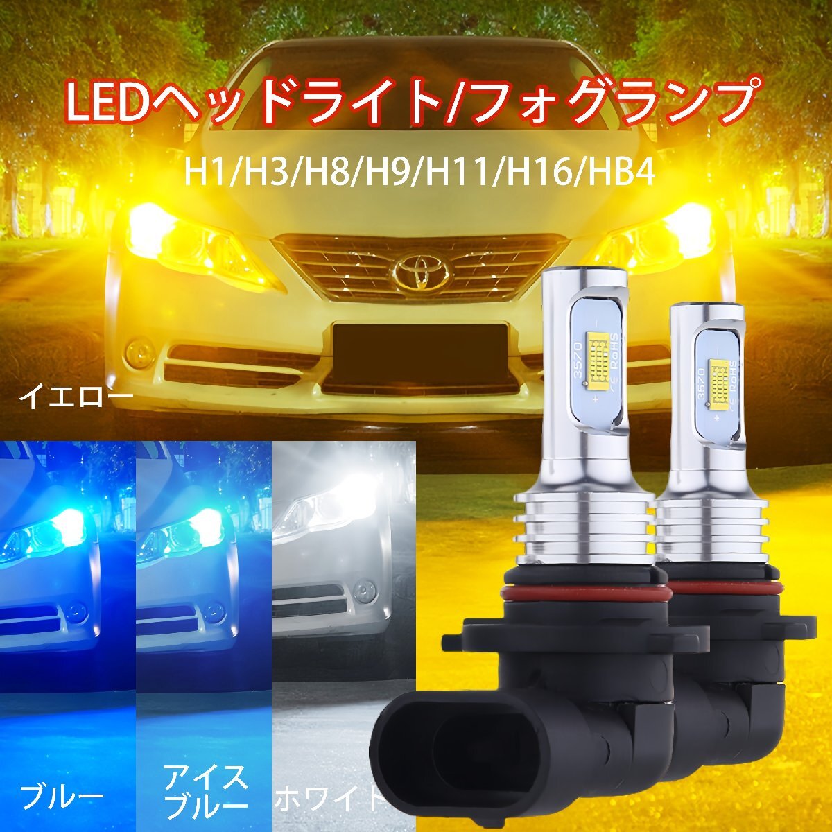 - LED h1 h3 h8 H9 h11 h16 hb3 hb4 純正サイズ 3000k 黄 ホワイト イエロー アイスブルー フォグランプ ヘッドライト