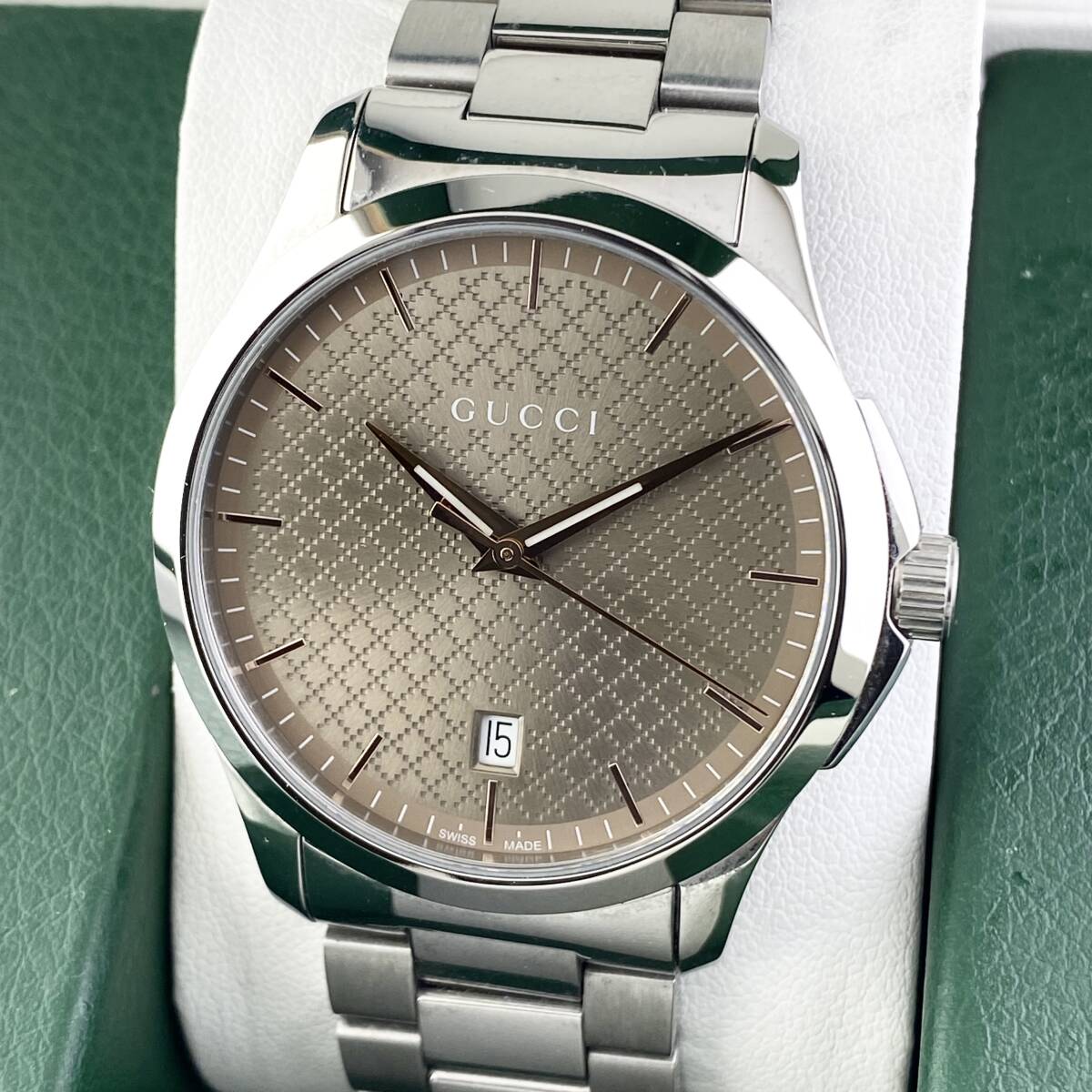 > 【1円〜】GUCCI グッチ 腕時計 メンズ 126.4 G-TIMELESS Gタイムレス ブラウン文字盤 GG ラウンドフェイス デイト 可動品