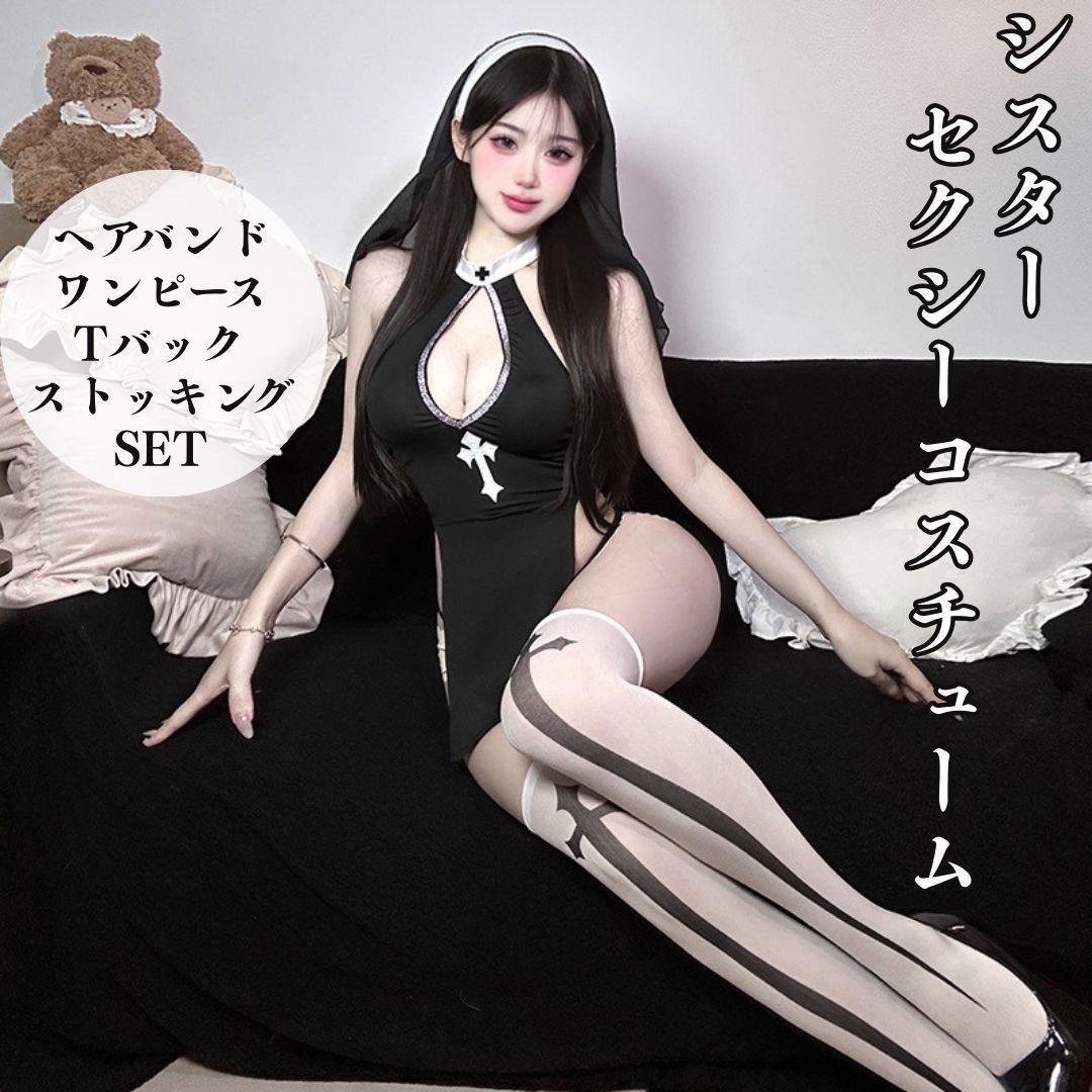 - シスター ノースリーブ 4点 マント付 修道女 セクシー ランジェリー コスプレ