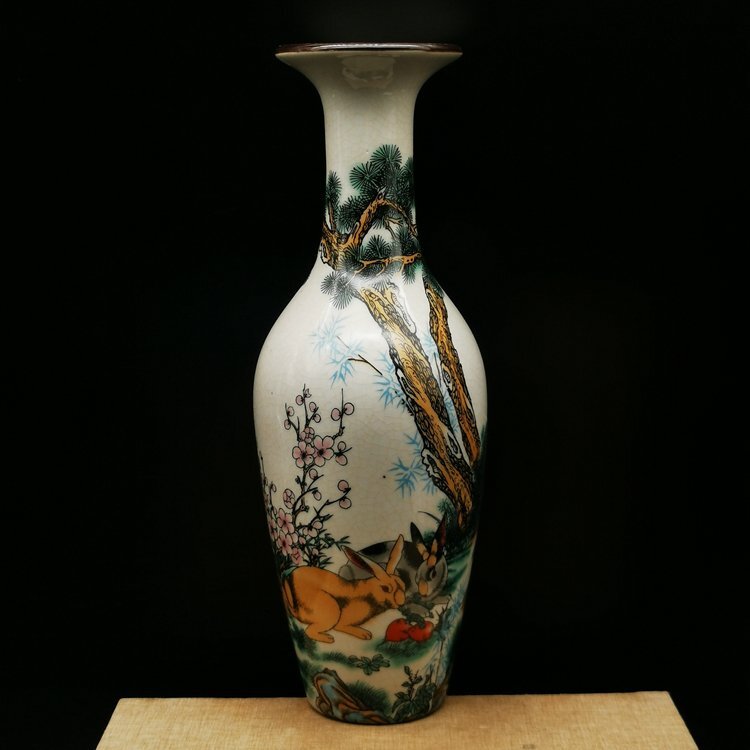 - 極美品 ! 粉彩 花瓶 うさぎ 兎柄 陶磁器 観賞 置物 中国陶磁 収蔵品 鑑賞 中国美術品景徳鎮 収蔵 コレクションfgcq069