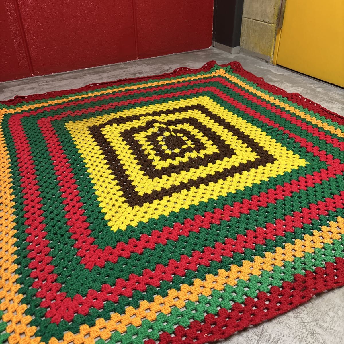 - 80s 希少 ハンドメイド作品 【ミッドセンチュリー】 昭和レトロ ビンテージ ハンドメイド 136×136㎝