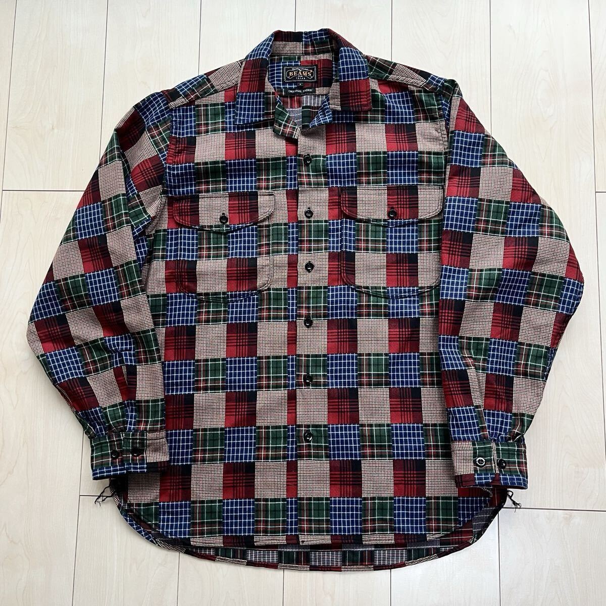 - BEAMS ビームスプラス パッチワーク柄 シャツドビーチェック ワークシャツ クラシックフィット S