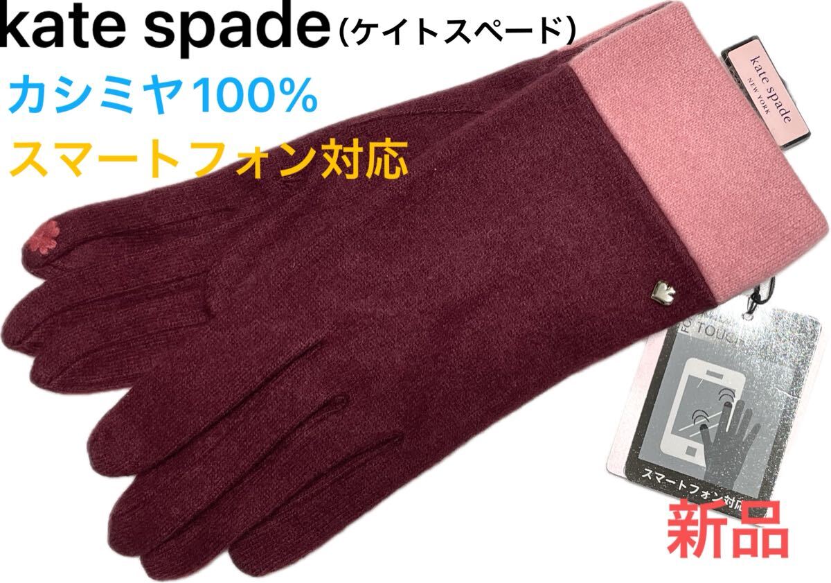 - 冬2 新品本物即決 カシミヤ100%手袋 kate spade(ケイトスペード) スマホ対応 日本製 婦人レディースグローブ ブランド ボルドー系