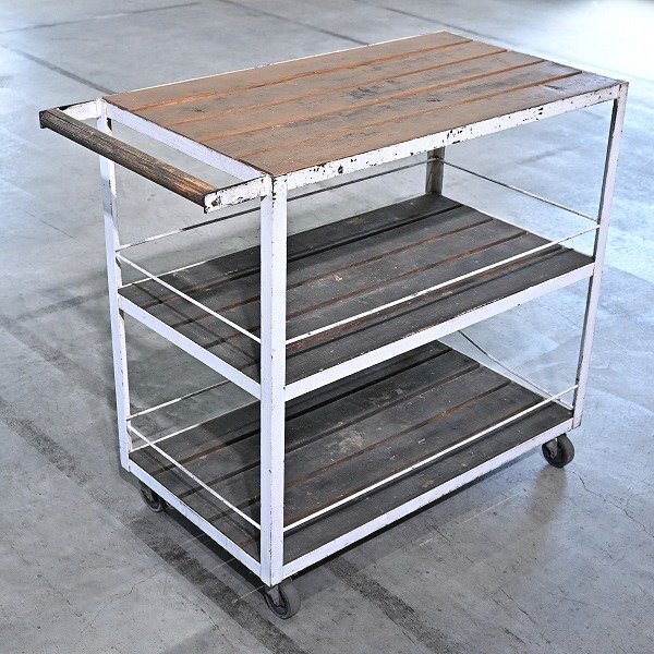 > ブルックリンスタイル サービングワゴン A 古材 異素材 キャスター ディスプレイ キッチン 配膳 オープンシェルフ インダストリアル