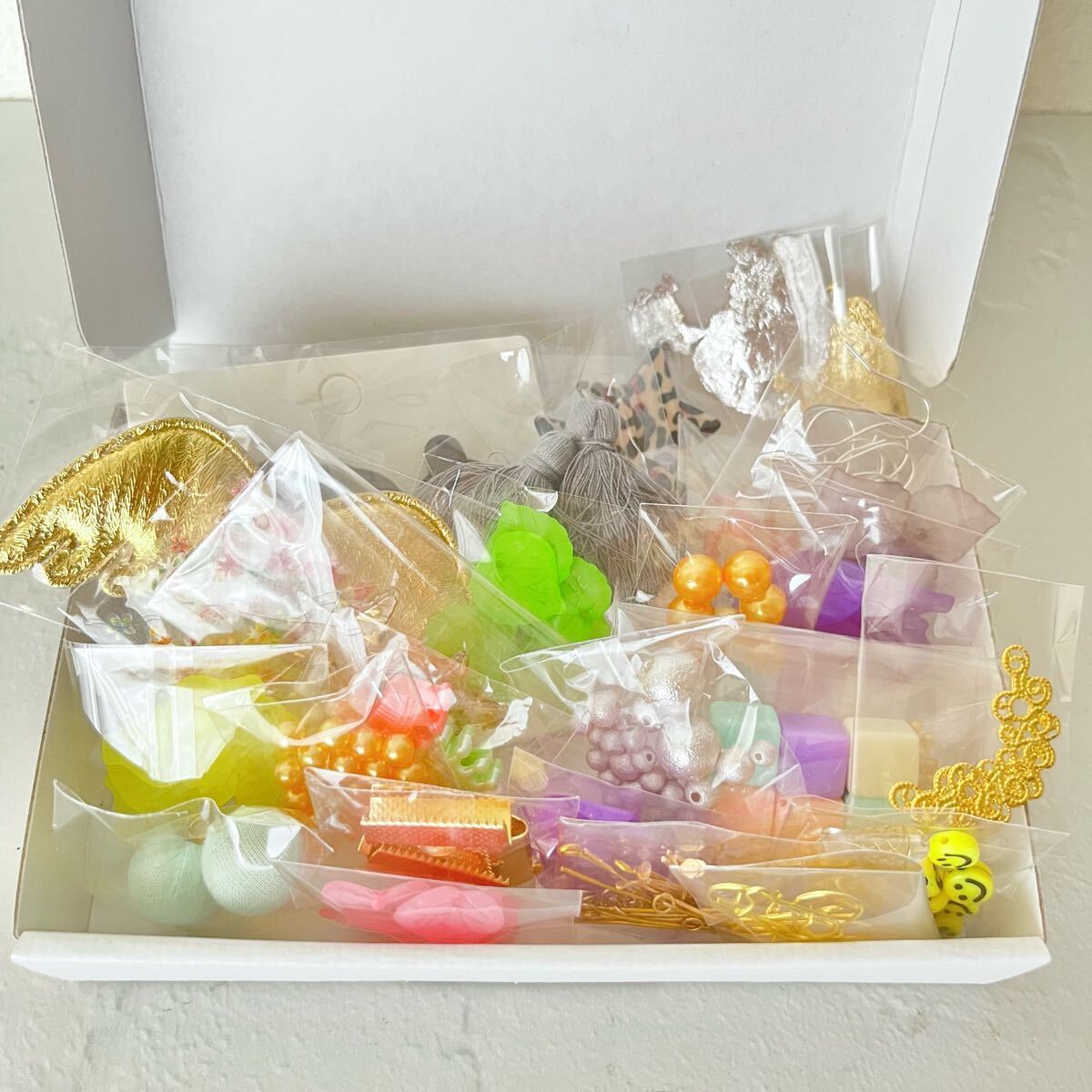 - ハンドメイド パーツ セット G 羽 リーフ ステッカー ピアス エアパール 金箔、銀箔、穴なしパール リーフパーツ 金属パーツ