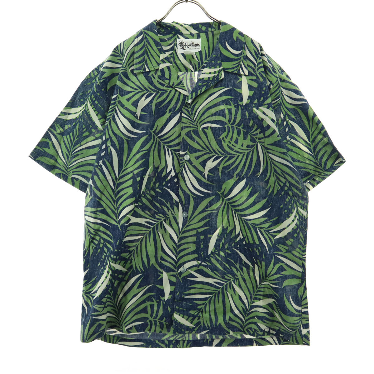 美品 Howie ハウィー ハワイ製 リーフ柄 半袖 アロハシャツ L ブルー メンズ