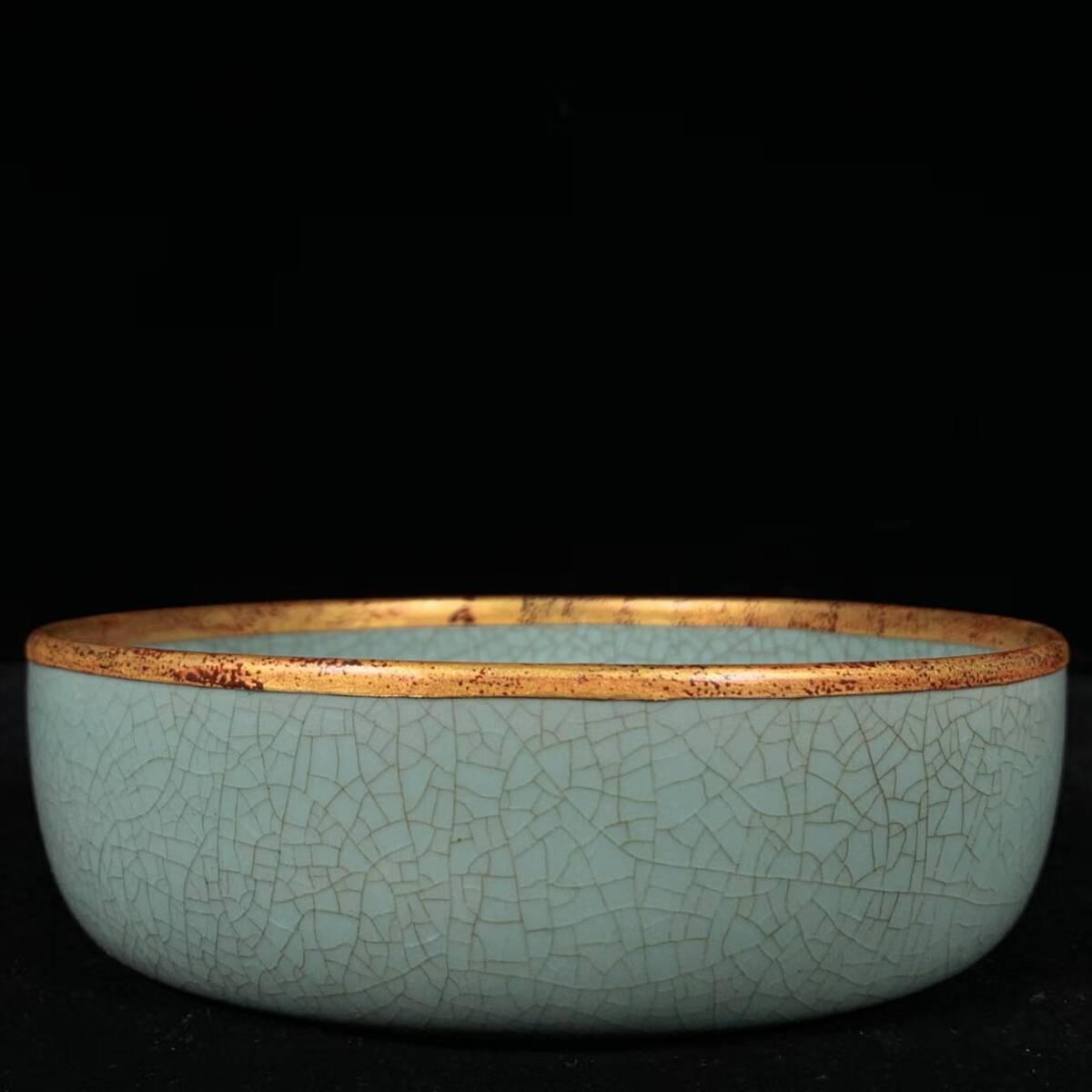 - 宋時代 磁器 秘蔵 汝窯【宣和殿御製】天青釉蒔金包口銘文平底洗い・皿 古陶磁器 陶芸 唐物 古賞物 時代物 骨董品 古置物 中国磁器 古玩923