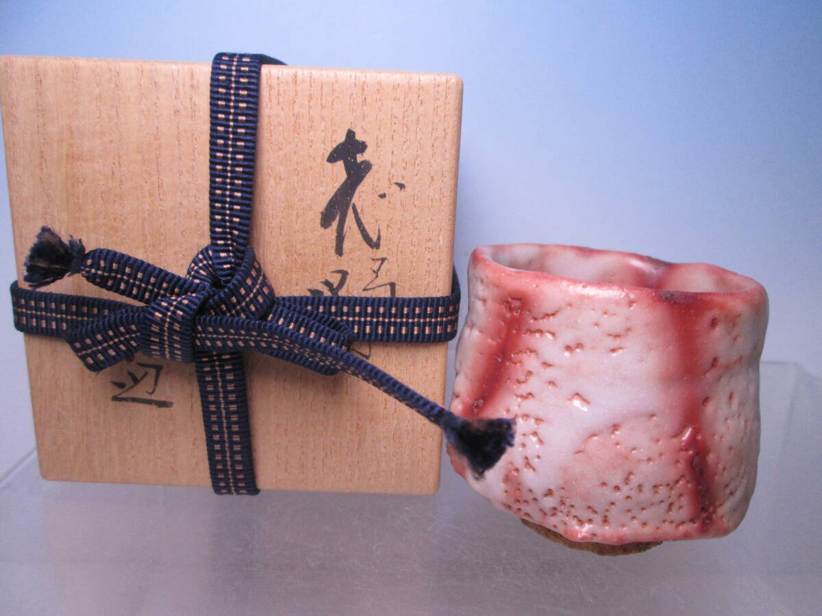 - ☆玉置保夫 志野 盃 共箱 岐阜県重要無形文化財 酒器/酒盃/酒杯/ぐい呑