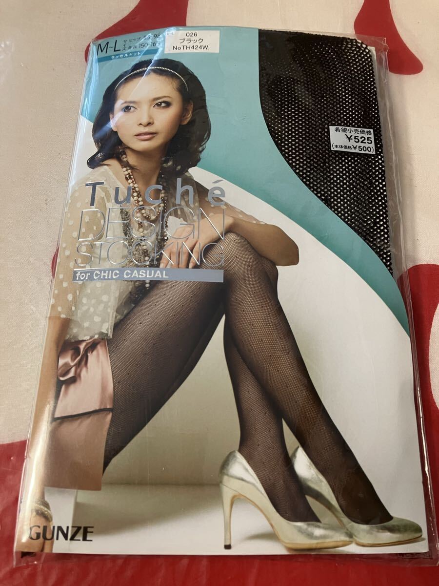 > gunze tuche ラッセルドット ブラック 黒 パンティストッキング グンゼ パンスト 柄 デザイン panty stocking トゥシェ 加藤夏希 網 水玉