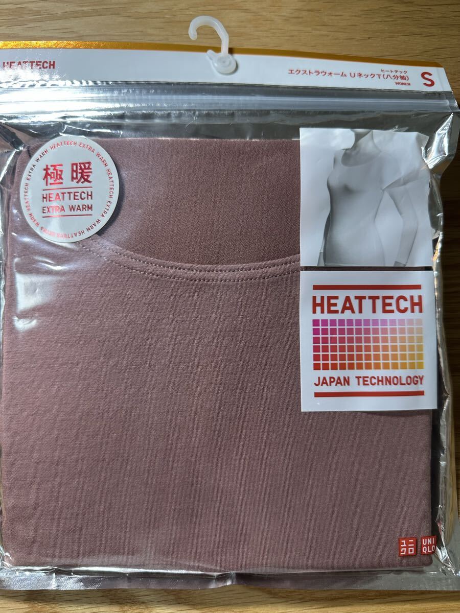 - 新品 ユニクロ 極暖 ヒートテックエクストラウォーム UネックT 八分袖 S ピンク