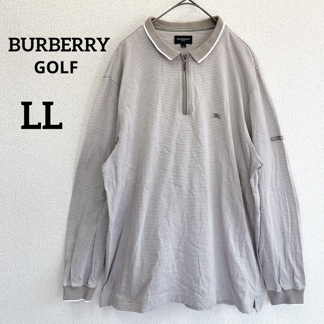 - ☆大きいサイズ☆ BURBERRY GOLF バーバリーゴルフ ハーフジップポロシャツ ボーダー 長袖 ベージュ ブラウン系 LL