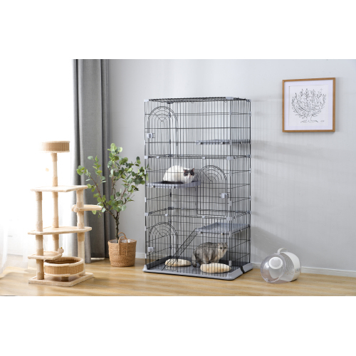 - おしゃれ 猫 ケージ キャットケージ 3段 猫ゲージ おしゃれ キャットハウス ネコ ハウス 多頭飼いペットケージ【グレー】【M サイズ】