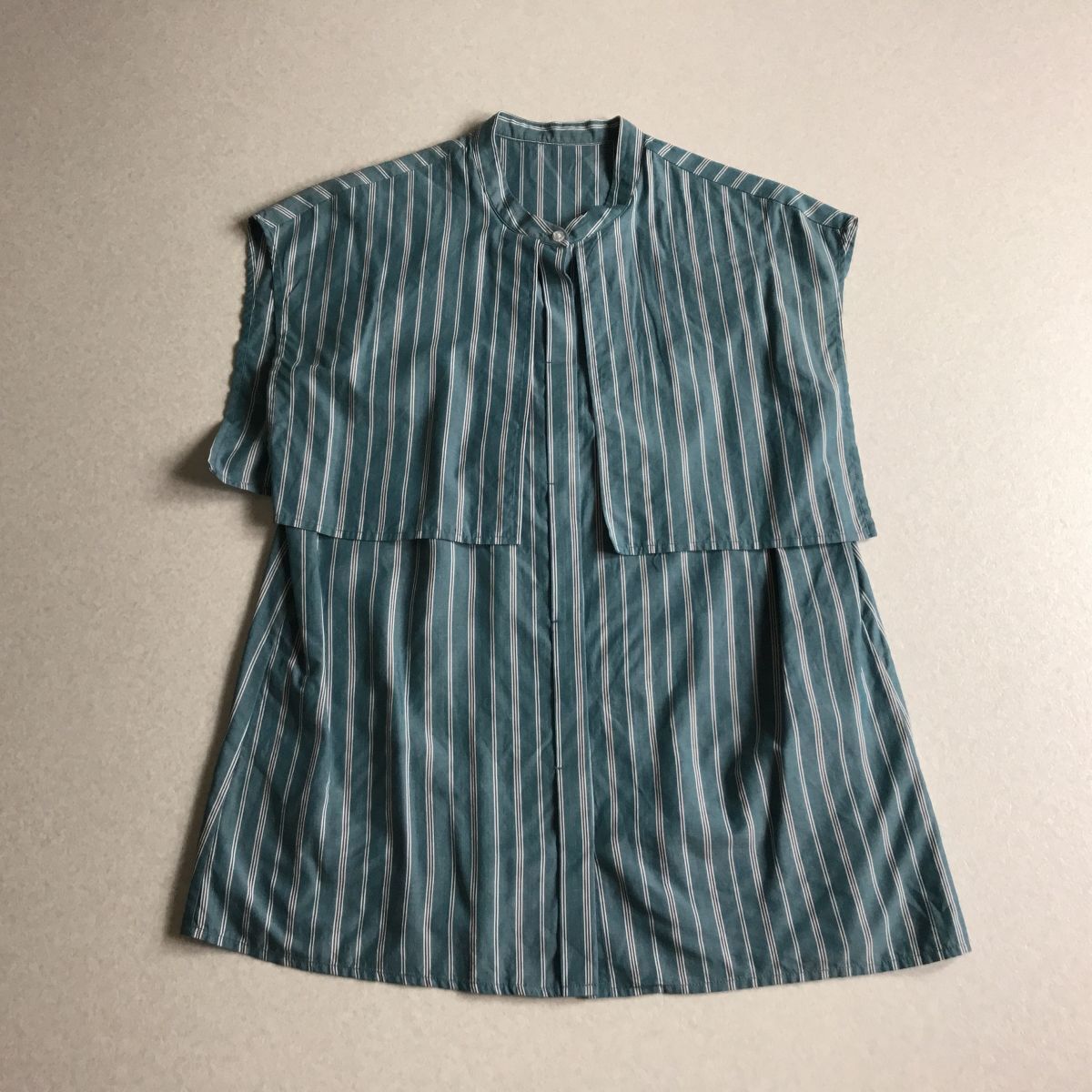 - ♪ untitled アンタイトル バンドカラー レイヤー風 ストライプ ブラウス
