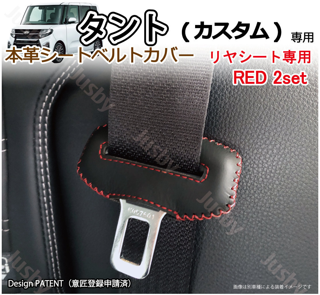 - ダイハツ タント&タントカスタム(LA650/660) シートベルトカバー(赤ステッチ/リア用) レザーカバー ドレスアップ パーツアクセサリー