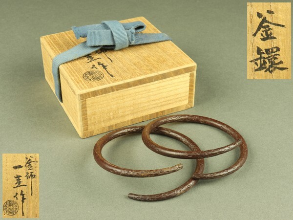 - 【宇】2877 釜師 角谷一圭作 釜鐶 共箱 茶道具