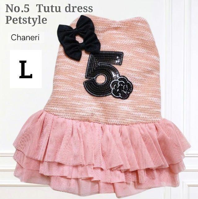 - 【L】新品 犬服 値下げ No.5 ツイード ワンピース Coco モスピンク ピンク シーズー プードル 旅行 散歩 カフェ 上品 ドレス お出かけ 秋