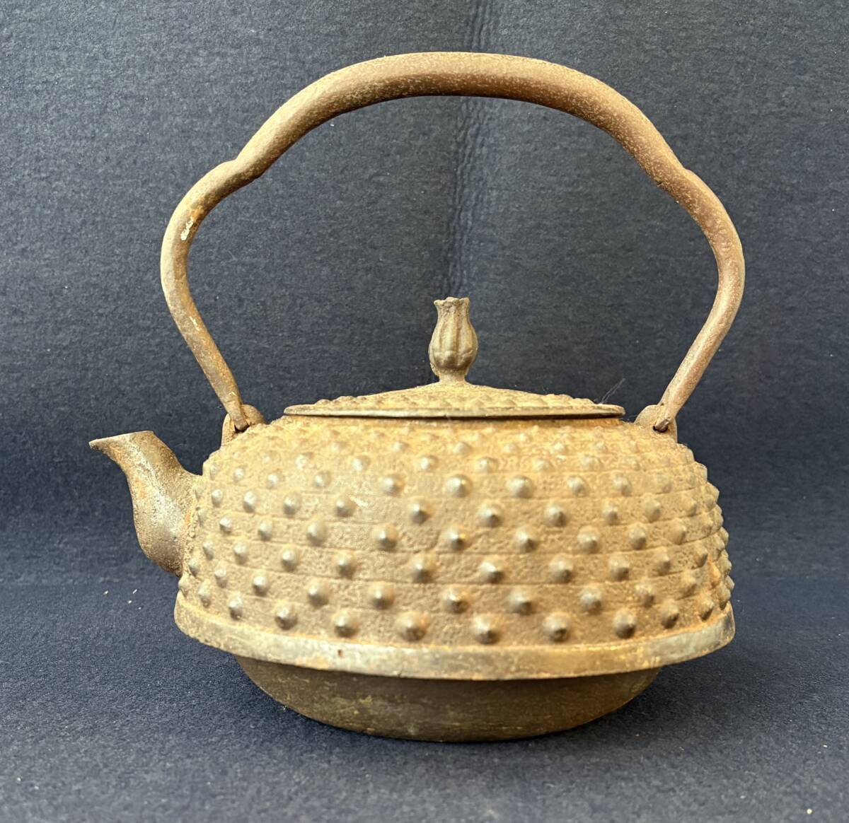 - 久慈砂鉄 鉄瓶 「久慈砂鉄 山王堂」 在銘 薬缶 湯沸 急須 茶道具 茶器 煎茶道具 茶道 アンティーク 古美術 鉄器 南部鉄器 金属工芸