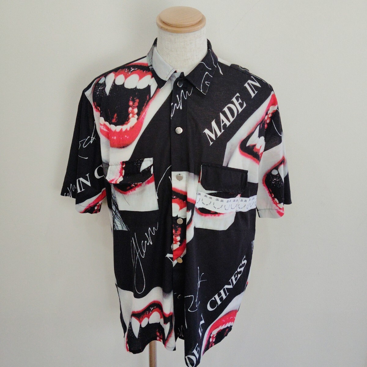 - 0924/L/MANDOLA PLAY メンズ 半袖シャツ 総柄 黒