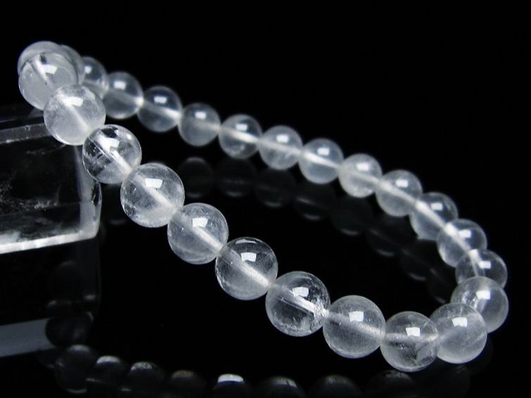 ●品質:困難の克服、物事の興隆と再生、着実な進歩、成長.育成、ヒーリング、新陳代謝の活発化、肌の再生、霊視力【水晶(石英、クリスタルクォーツ)】水晶とは石英を指しますが、一般的に無色透明のものをクリアクォーツやロッククリスタルと呼んでいます。水のように美しく透き通ったものが良いと思われがちですが、内部にヒビや他の鉱物などのインクルージョン(内包物)が入っているものがあり、それが天然物の証。また、インクルージョンによって様々な種類に分類され、それぞれ違った印象を与えてくれます。古くから呪い事に使われてきた水晶に秘められたパワーはとても万能で、あらゆる場面に対応するといわれています。特に邪気を祓う力が強いため、人間関係を円滑にしたり、心身をクリアな状態にしたい場合に最適です。また空間を浄化する作用もあるとされ、インテリアとしても高い人気を誇っています。石自体に強い自浄作用があり、他のパワーストーンが吸収した負のエネルギーを浄化するといわれています。更にアクセサリーとして他の石と組み合わせる場合、それぞれの石の個性を引き出しバランスを取ってくれる効果があるそうなので、ぜひとも組み込んでおきたいですね。パワーストーン入門に最適な水晶ですが、愛好家にとってはかなり奥が深く最後に行き着くのもこの石なんだそうです。何もかもを見透かすような透明な水晶には、本当に神秘的なパワーが宿っているのかもしれません。