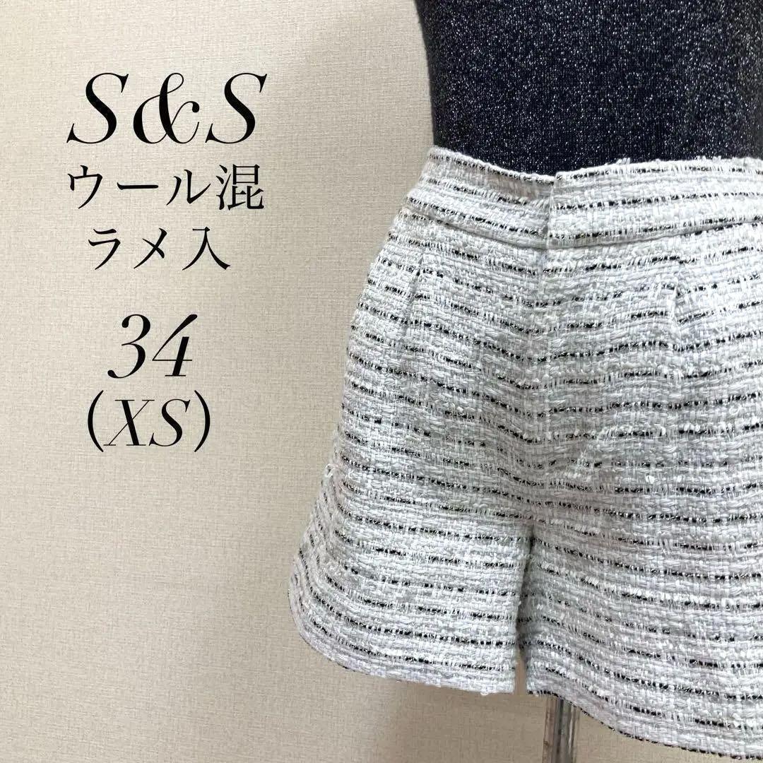 - S&S スピックアンドスパン ショートパンツ タック ウール混ラメ y2k オフホワイト系 ギャル 34 XS
