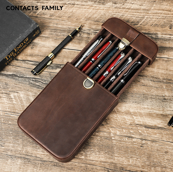 - 人気品ペンケース 本革牛革6本差し シンプル おしゃれ コンパクト軽い 小さめ スリム筆箱 ふで箱 ポーチ 革小物 文房具収納贈り物 父の日