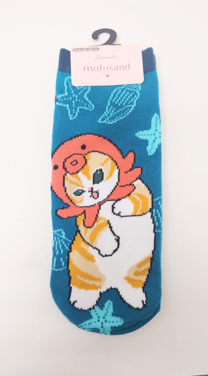 > 猫柄 猫雑貨 猫グッズ モフサンド mofusand ぢゅの スニーカー丈 靴下 ソックス 海のタコ柄 ねこ ネコ