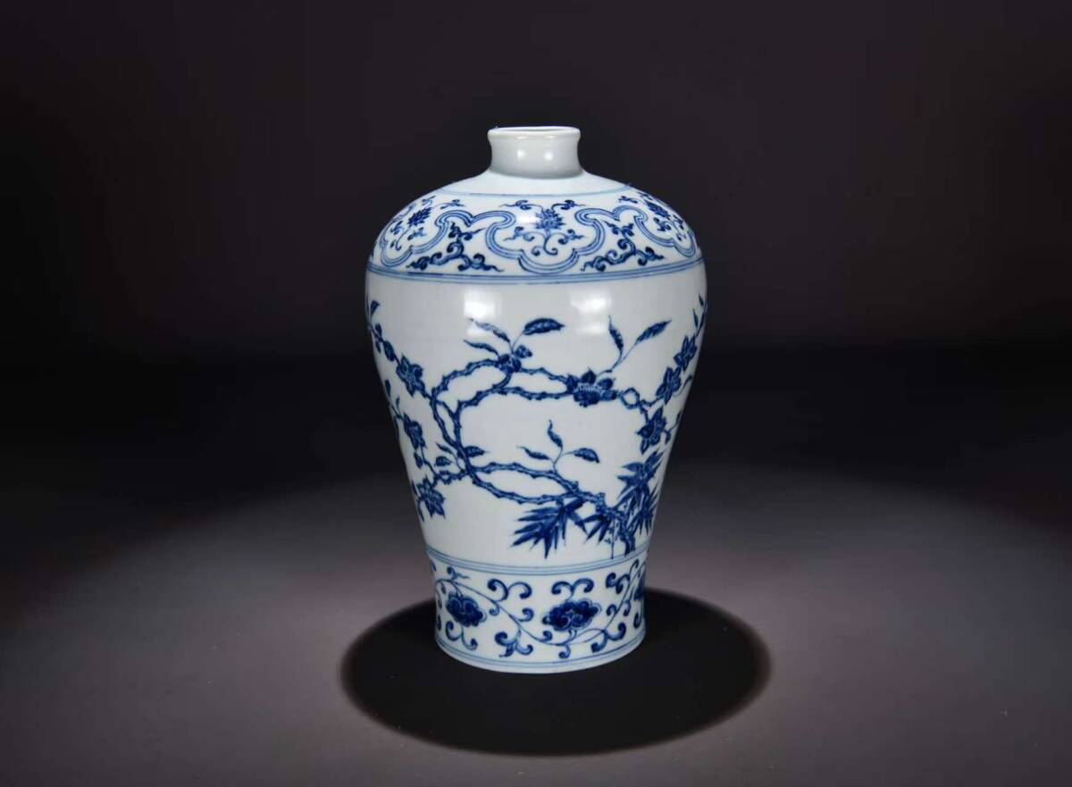 - 磁器 明 永樂 青花 折枝花卉紋 梅瓶 古陶瓷 古擺件 古置物 賞物 中国古玩 骨董品 時代物 稀少唐物