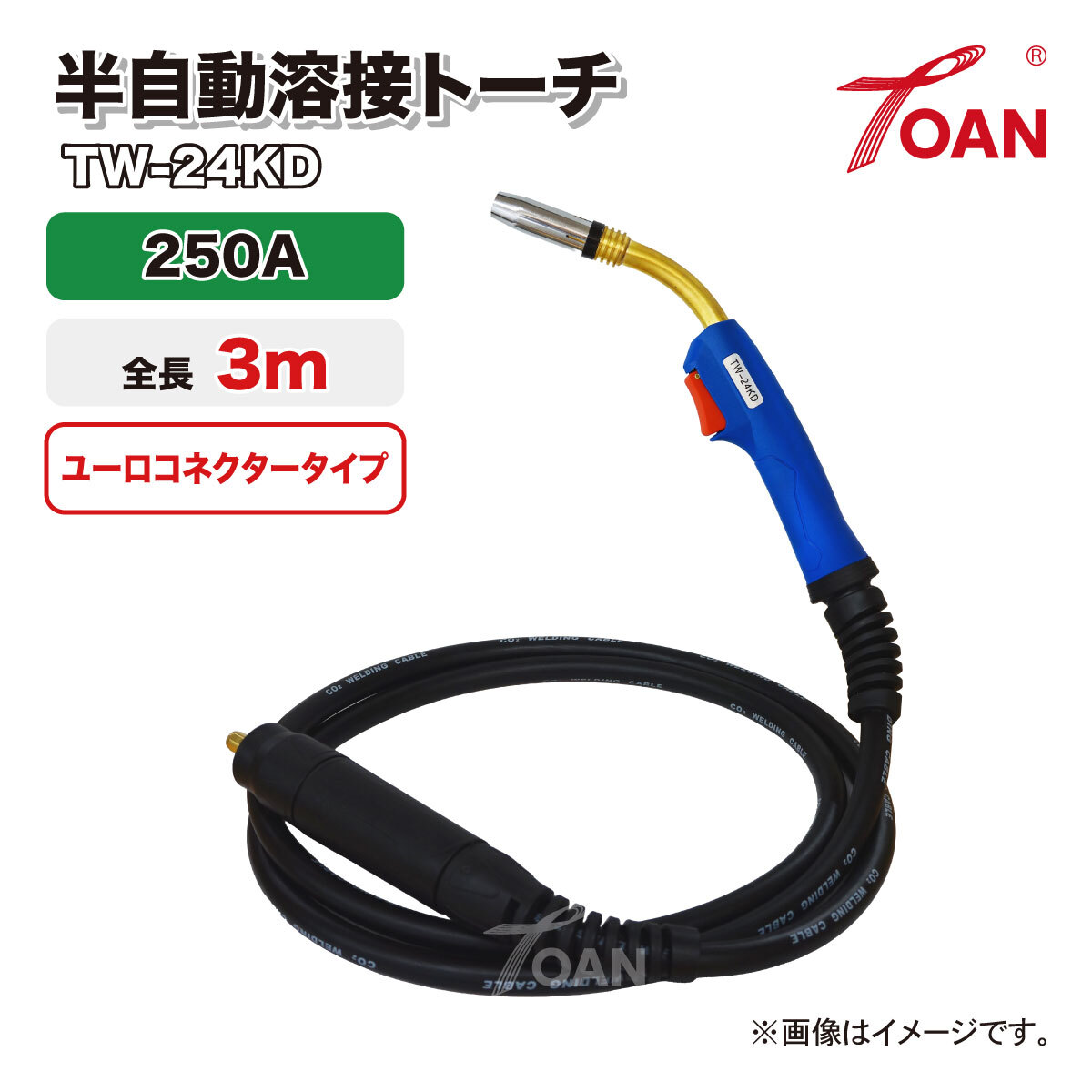 - 半自動溶接機 CO2トーチ ユーロコネクター式 250A 全長: 3m TW-24KD 海外溶接機対応 インボイス対応領収書発行可 即日発送