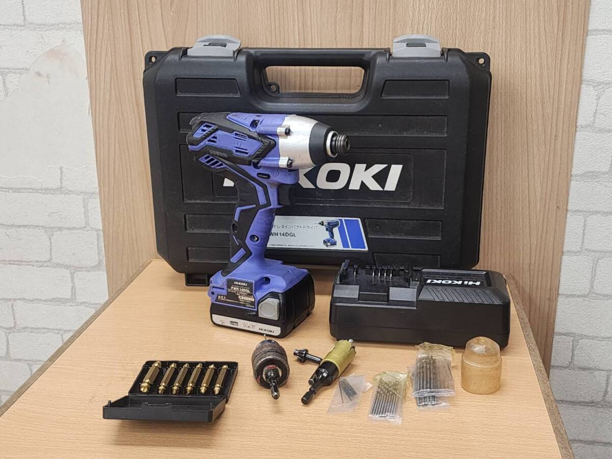 - R70924 HITACHI 日立工機 コードレスインパクトドライバ FWH 14DGL+バッテリー BSL 1415S+充電器 UC 18YKSL ビット・説明書・ケース付き