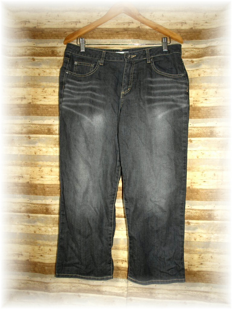 - ニッセン デニム クロップドパンツ ダメージブラック 76-99